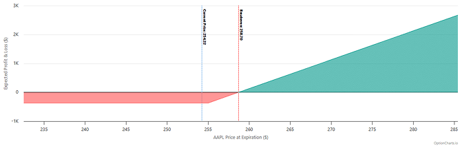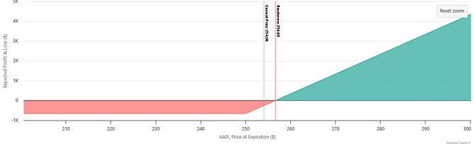 What you’re buying: When Apple is trading at $254.08, buying a $250 call means you’re purchasing an option that’s already ~$4 “in-the-money.” You’re paying mostly for something that has real, immediate value; if the option expired today, it’d be worth at least $4.