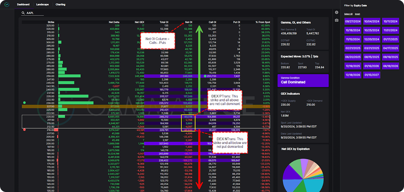 Before we dive into the trades, let’s set the context. In order to understand if we want to be looking for bullish or bearish trades, we have a specific framework that we walk through predicated on the GammaEdge options market structure analysis framework. These are the three key elements of it: