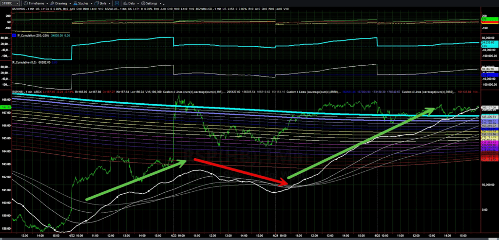 For instance, when the Cumulative Tick and Railroad Tracks are properly stacked and trending in the same direction (like below) as the options structure, MM hedging flows are more likely to act as a tailwind than a headwind to price movement. In this aligned state, Market Makers are forced to hedge in the direction of the trend, creating self-reinforcing price action.